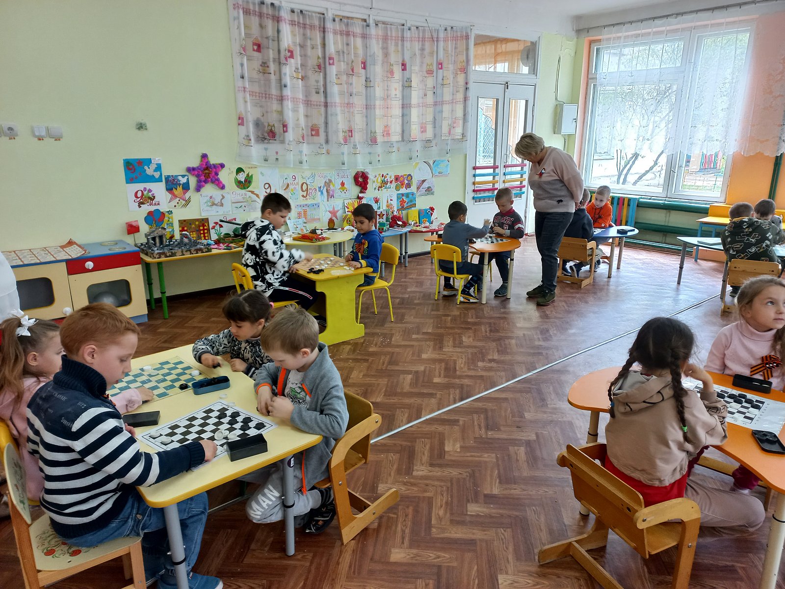 04.05.2023 г. наши воспитанники старшей и подготовительных групп приняли участие во всероссийской акции "Мирная партия в шашки"